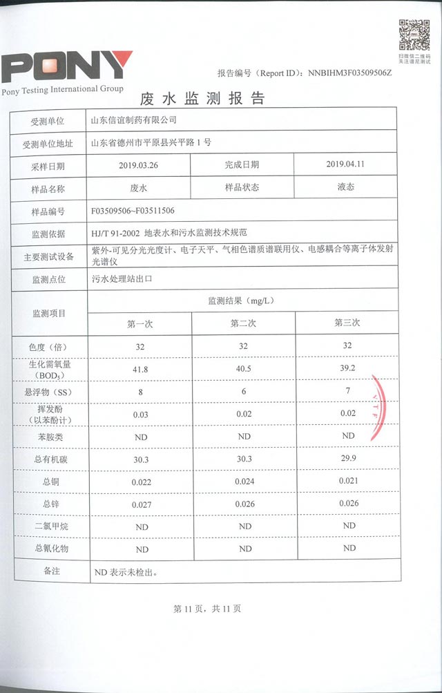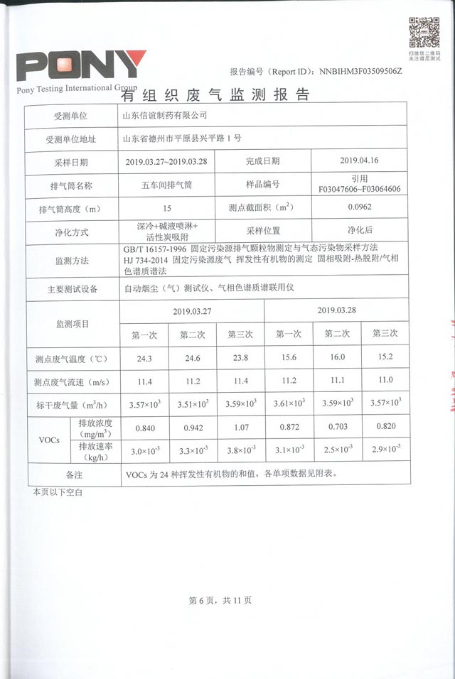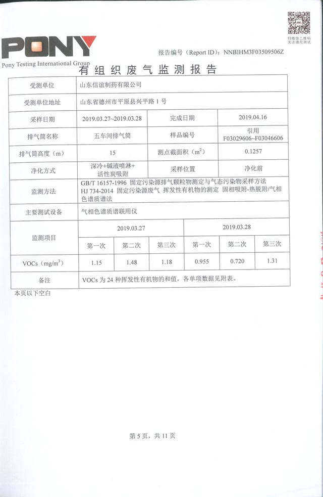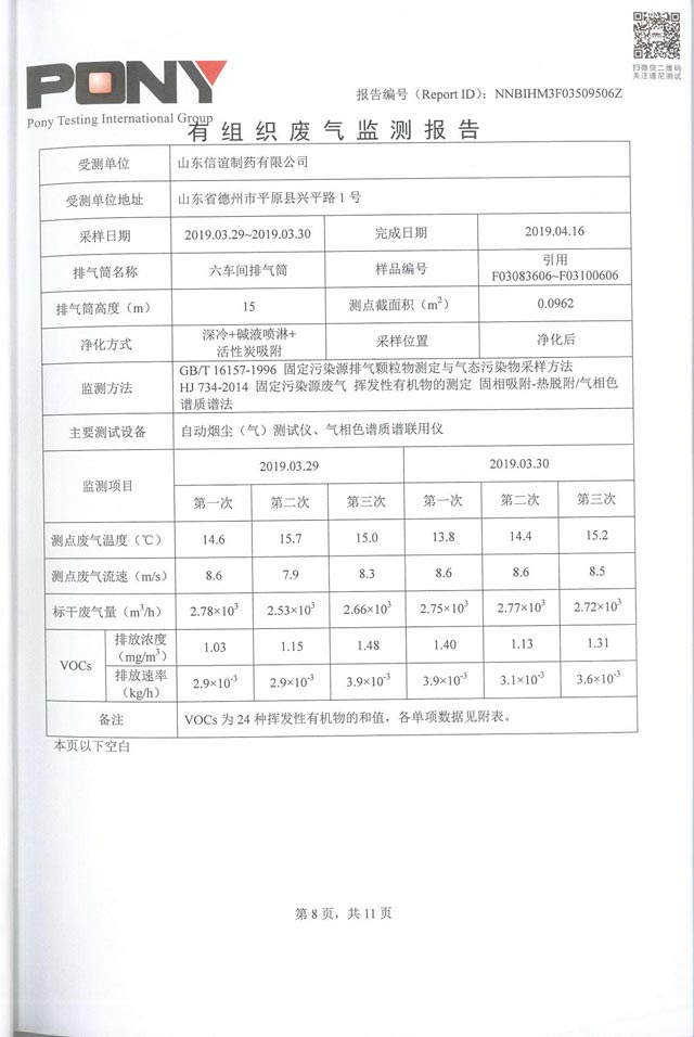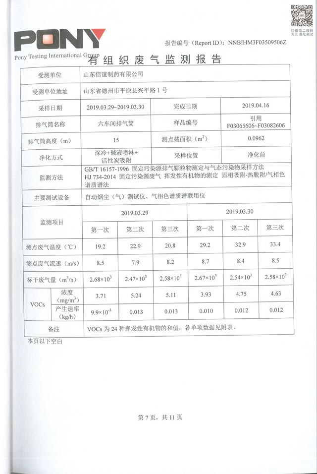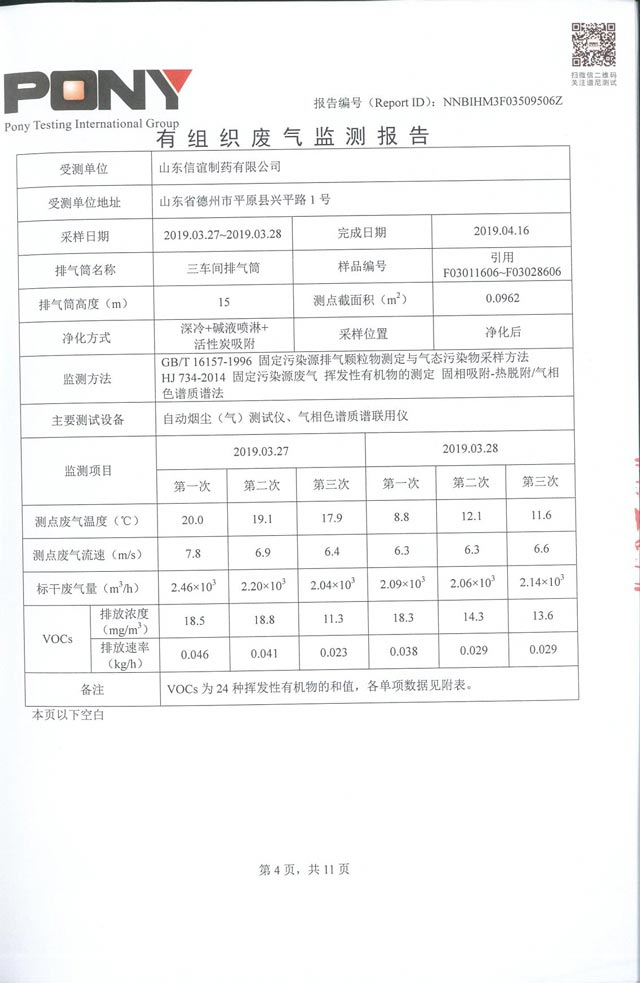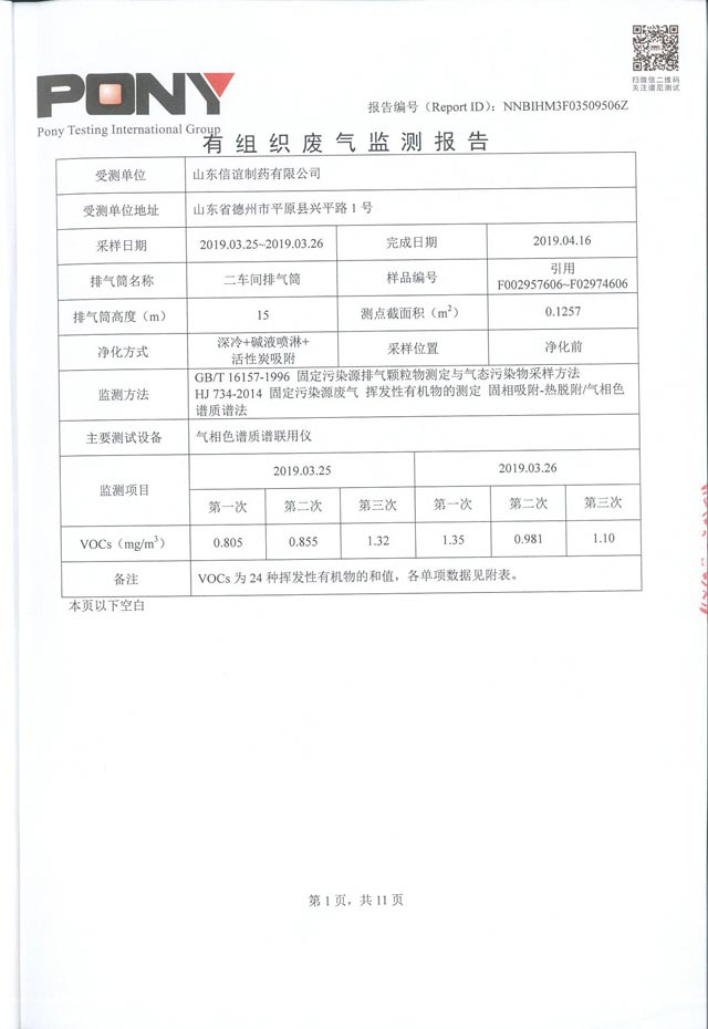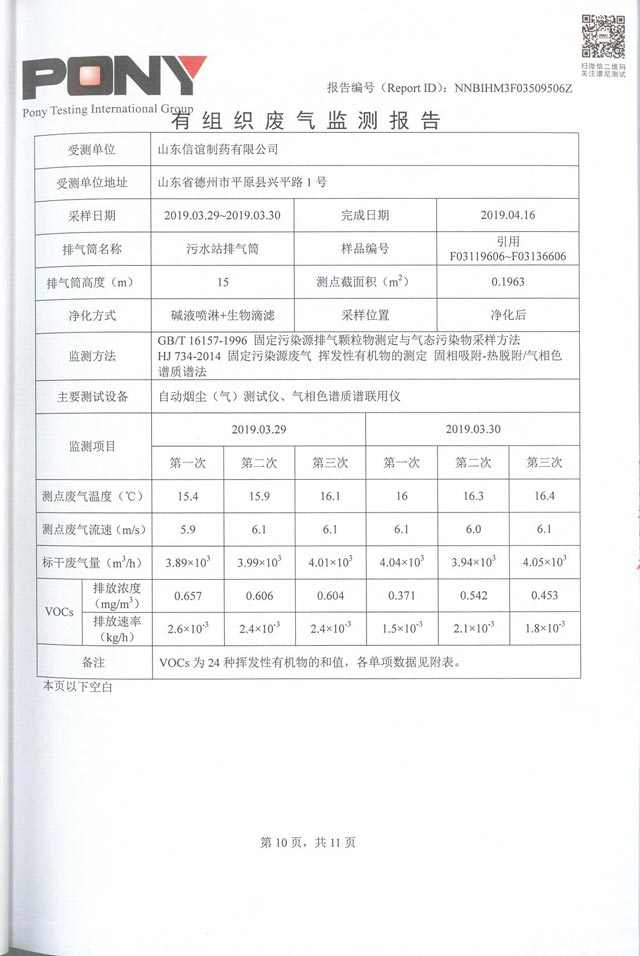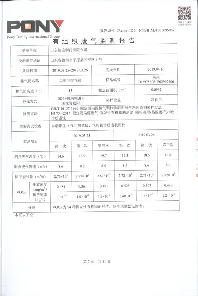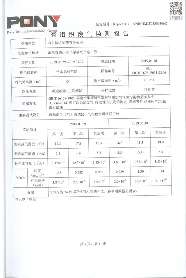山东信谊制药有限公司废气监控报告