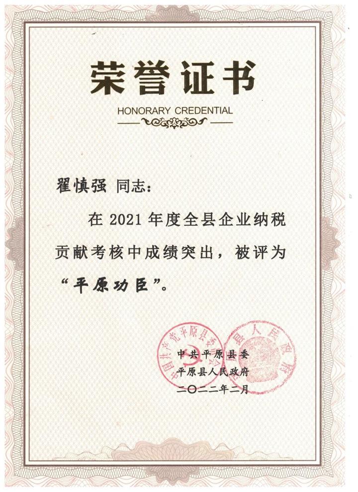 山东信谊制药有限公司总经理 翟慎强再次荣获“平原功臣”,婵联9届。企业连续五年荣誉“企业纳税突出贡献奖”。